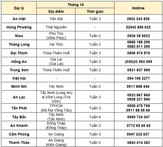 LỊCH BẢO DƯỠNG VÀ SỬA CHỮA LƯU ĐỘNG TẠI HỆ THỐNG ĐẠI LÝ ISUZU THÁNG 10/2025